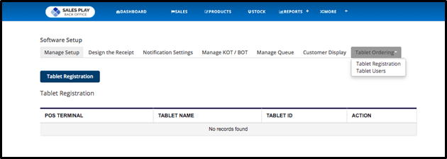 8. Once it’s entered, the POS terminal and tablet name will appear on the SalesPlay Back office.